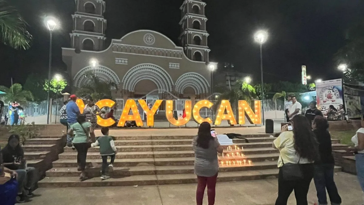 Con un sombrero con manchas que simulan sangre y velas frente a las letras de Acayucan y de la parroquia de San Martín Obispo, así como en las escalinatas del parque Benito Juárez, esta noche de sábado 15 de noviembre, ciudadanos colocaron una lona con los nombres de Irma Hernández Cruz, Bernardo Bravo Manriquez y Carlos Alberto Manzo Rodríguez.