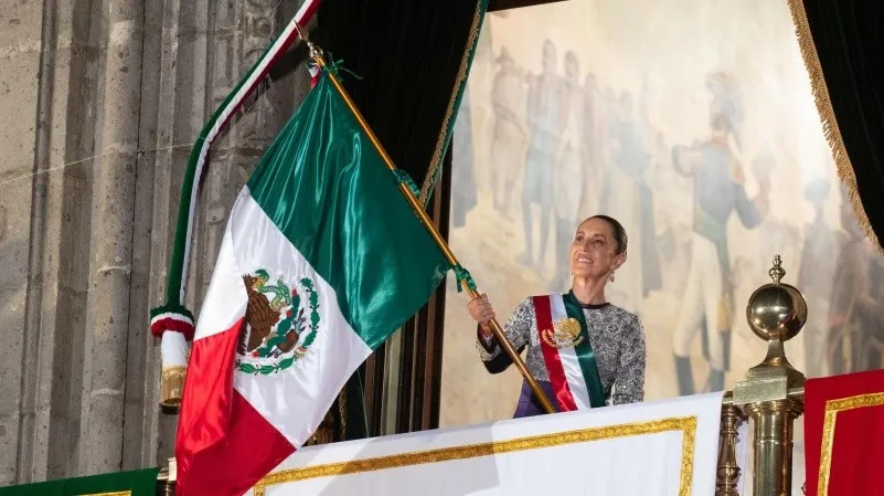 Ante aproximadamente 280 mil mexicanas y mexicanos que se dieron cita en el magno Zócalo de la Ciudad de México, la Jefa del Ejecutivo Federal ondeó en el balcón principal de Palacio Nacional la bandera nacional, que recibió por primera vez en la historia de mujeres militares pertenecientes al Heroico Colegio Militar: de la abanderada teniente de Policía Militar, Jennifer Samantha Torres Jiménez y de la escolta conformada por las cabo de cadetes Samira Michel Delgadillo Chávez; Itzel Sarahi Martínez Tozcano; Karla Paola Guevara Pérez; y las cadetes Andrea Carvajal Audelo y Yetzelany Gallegos Ortiz.