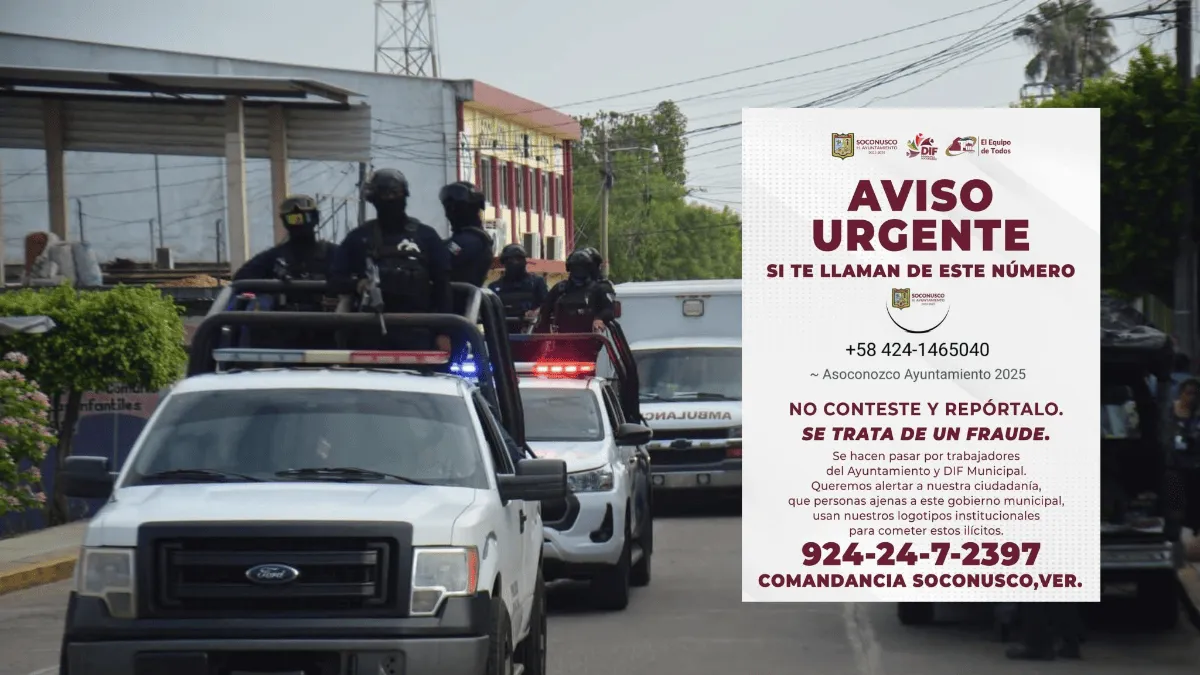 Ante el incremento de reportes ciudadanos, el Ayuntamiento de Soconusco emitió un comunicado urgente para advertir a la población sobre llamadas telefónicas provenientes del número +58 424 146 5040, presuntamente utilizadas por personas dedicadas a cometer fraudes mediante engaños.