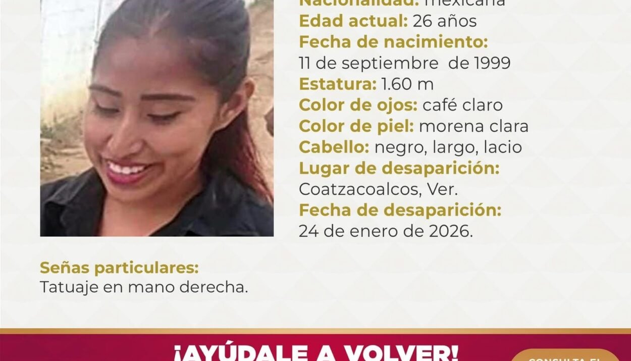Desde hace nueve días, la joven Sarahí Olmedo García de 26 años, se encuentra desaparecida en el municipio de Coatzacoalcos, su familia teme que se encuentre en alguna situación que ponga en riesgo su integridad.