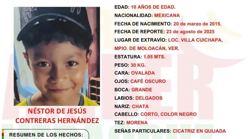 En Villa Cuichapa, familiares y amigos piden ayuda para localizar al pequeño de 10 años, Néstor de Jesús Contreras Hernández.