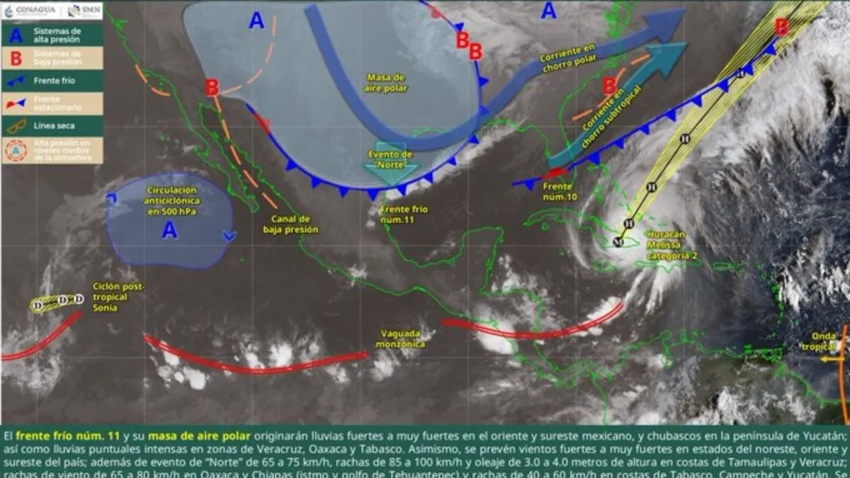 El frente frío número 11 ocasionará nublados, nieblas, llovizna y lluvias, principalmente en las cuencas altas de Actopan, La Antigua, Jamapa-Cotaxtla y Papaloapan, así como en Los Tuxtlas y dentro de las cuencas de Coatzacoalcos y Tonalá. Es muy probable que en estas últimas dos se registren lluvias puntuales fuertes durante este jueves.