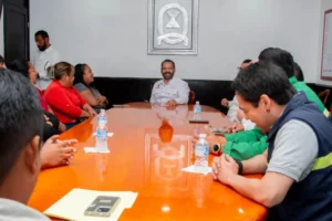 Darinel Cipriano, quien asume por segunda vez la tesorería municipal, pues antes ya ejerció la labor en un periodo anterior; dialogó este lunes, con una veintena de trabajadores municipales que habían acudido a hablar con la presidenta del concejo, Nancy Leaños Fernández, a dialogar con ella y reclamar su pago, pero está ya se había retirado momentos antes.