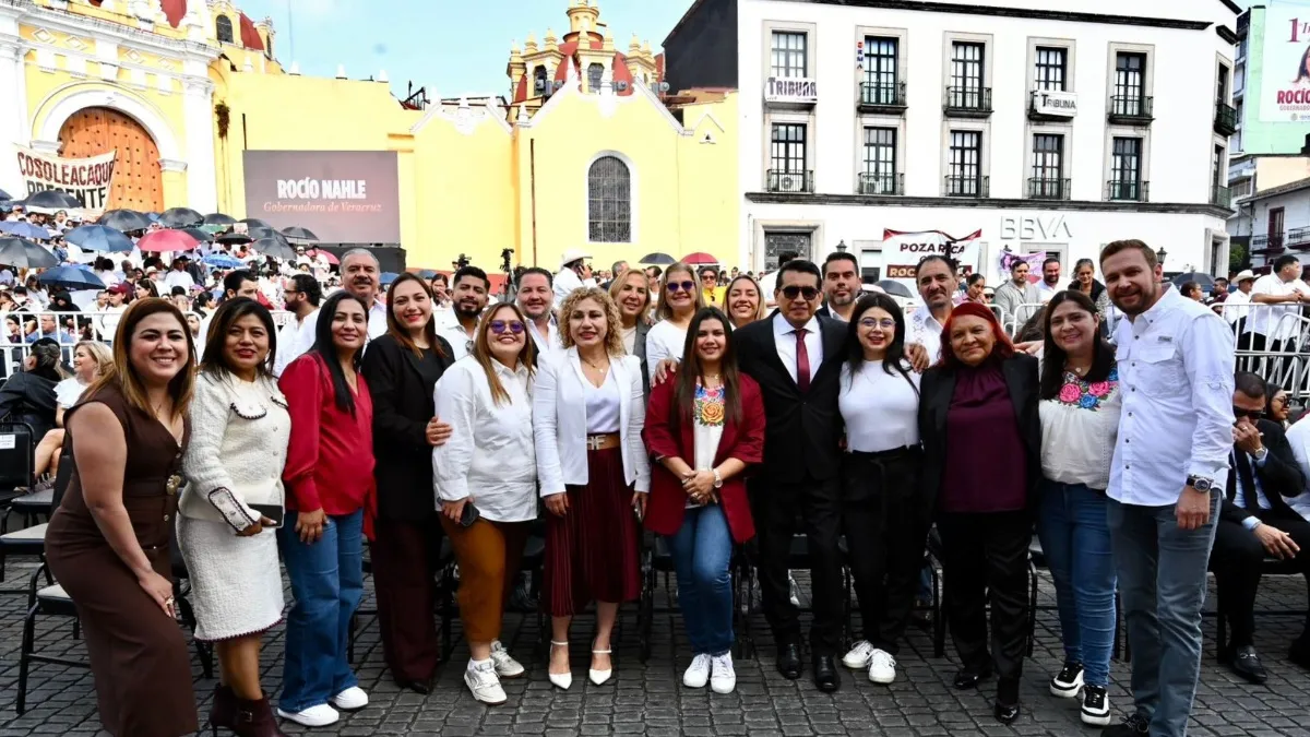 Diputadas y diputados de la LXVII Legislatura del estado, encabezados por la presidenta de la Mesa Directiva, Naomi Edith Gómez Santos, y por el presidente de la Junta de Coordinación Política (Jucopo), Esteban Bautista Hernández, acudieron a la ceremonia del Primer Informe de Gobierno de la gobernadora de Veracruz, Rocío Nahle García, realizado en la plaza Lerdo de la ciudad capital.