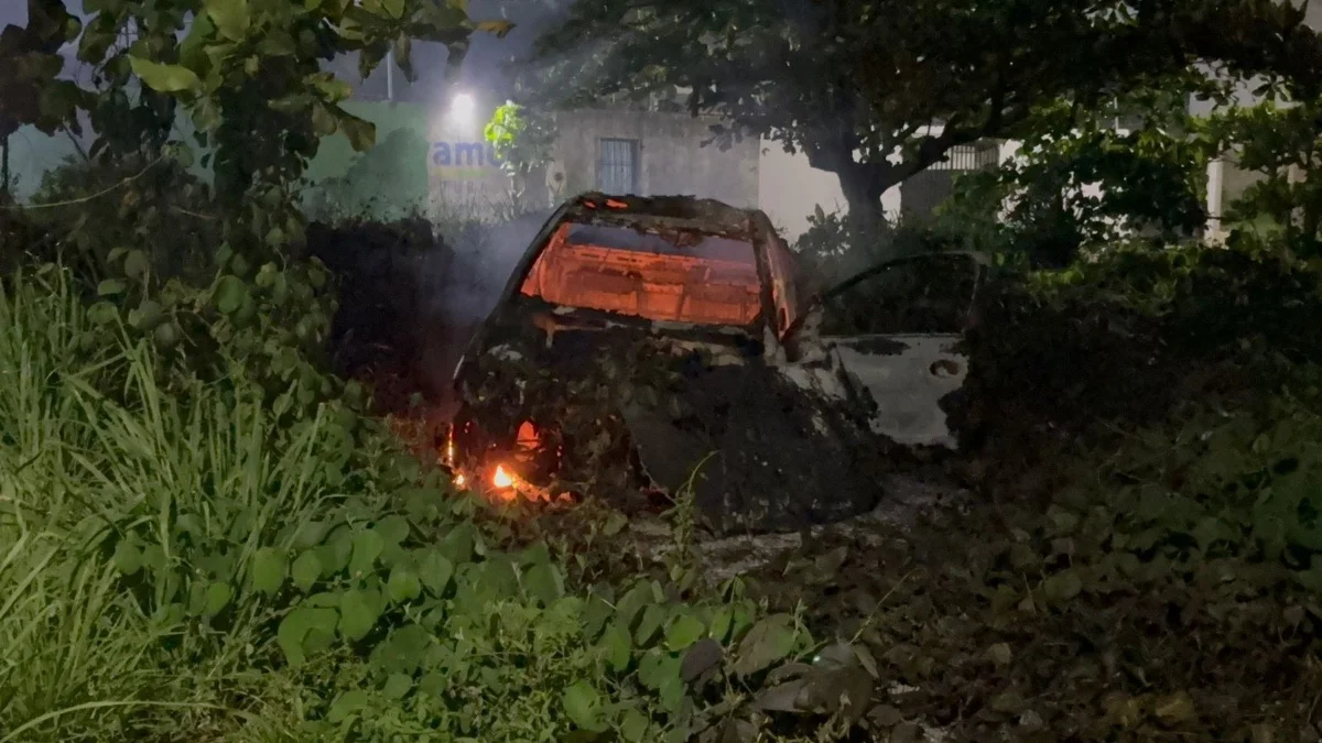 Los brigadistas trabajaron de forma coordinada durante varios minutos para contener el fuego, el cual consumió por completo la unidad —una camioneta pequeña, sin motor y con batea— y afectó una parte considerable de la vegetación del terreno.
