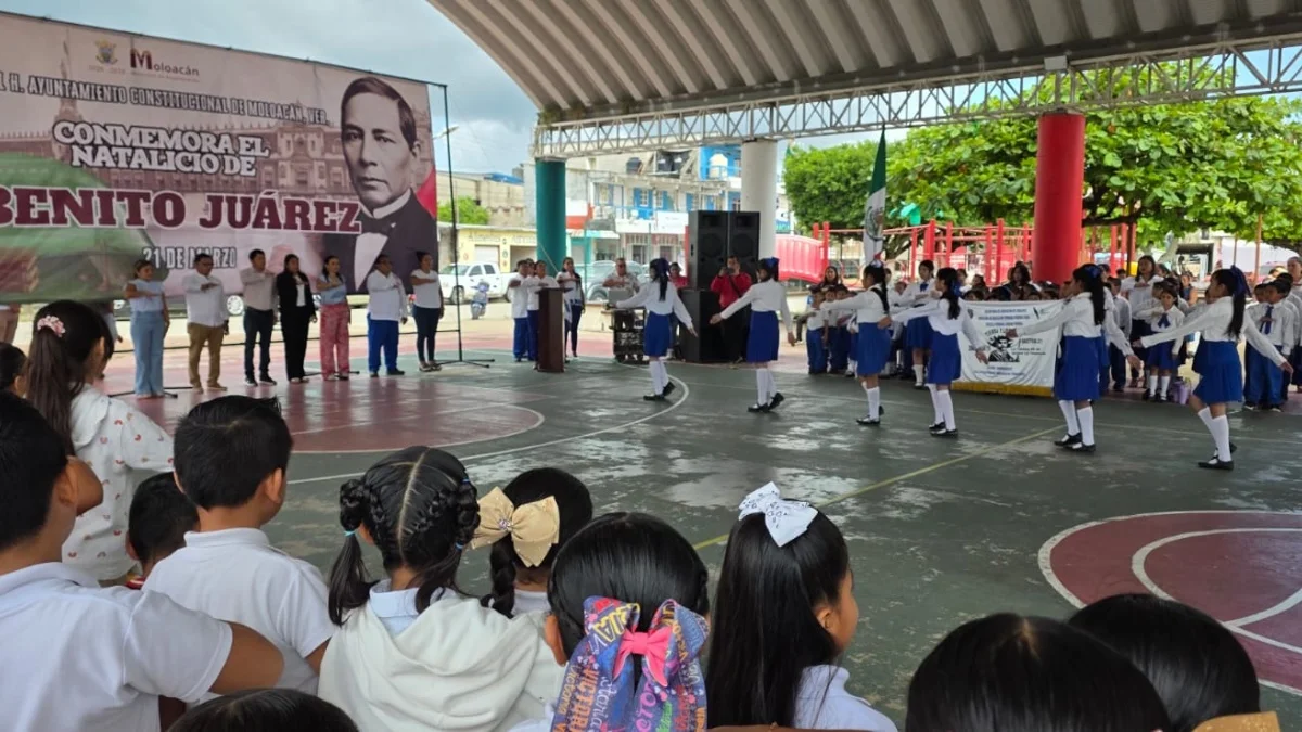 La mañana de este viernes, el municipio de Moloacán se vistió de gala para conmemorar el natalicio de Benito Juárez García, una de las figuras más emblemáticas y fundamentales en la consolidación del Estado mexicano. El evento tuvo lugar en el domo del parque municipal de Villa Cuichapa, donde se dieron cita autoridades locales, el sector educativo y familias de la región.