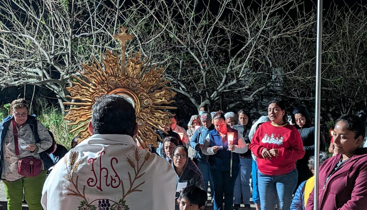 En un llamado a la reconciliación y la tranquilidad social, la Parroquia San Rafael Guízar y Valencia realizó una procesión con el Santísimo Sacramento por calles de la colonia Las Gaviotas, con la intención de elevar oraciones por la paz en México, en un contexto marcado por hechos recientes de violencia tras el abatimiento de Nemesio Oseguera, conocido como “El Mencho”.