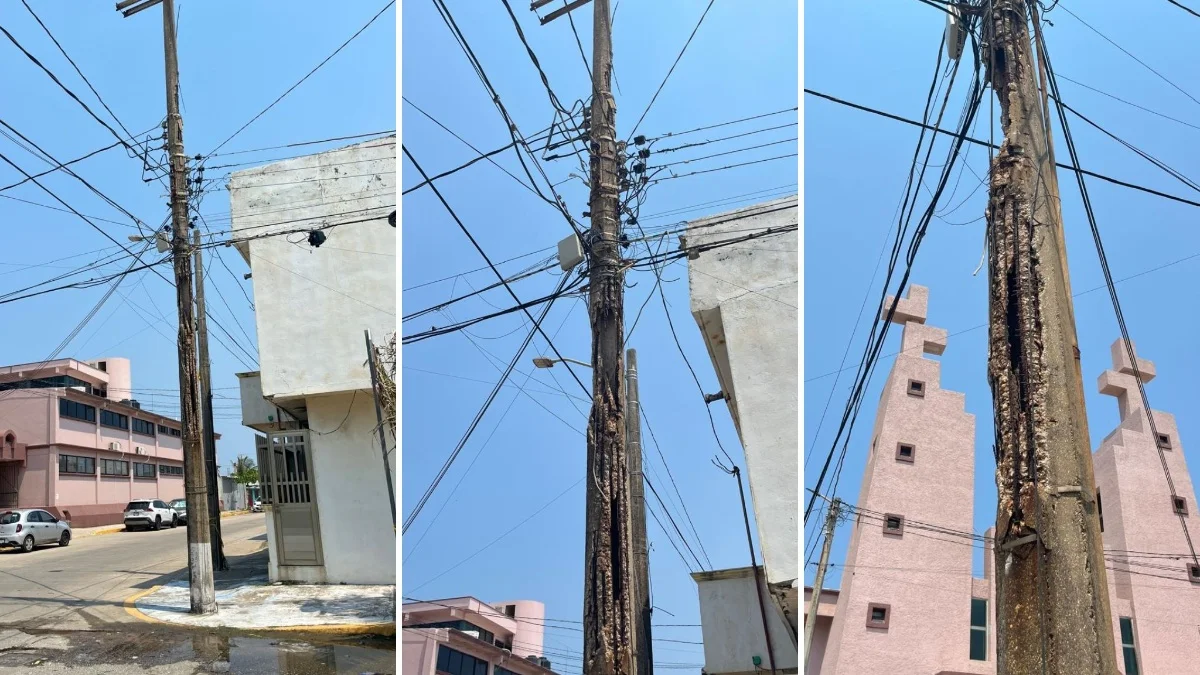 Un vecino de la colonia Puerto México, denunció el riesgo que representa un poste de la Comisión Federal de Electricidad (CFE) que, aseguró, lleva cerca de tres años en malas condiciones sin que hasta el momento haya sido reparado, pese a los reportes realizados ante la empresa.