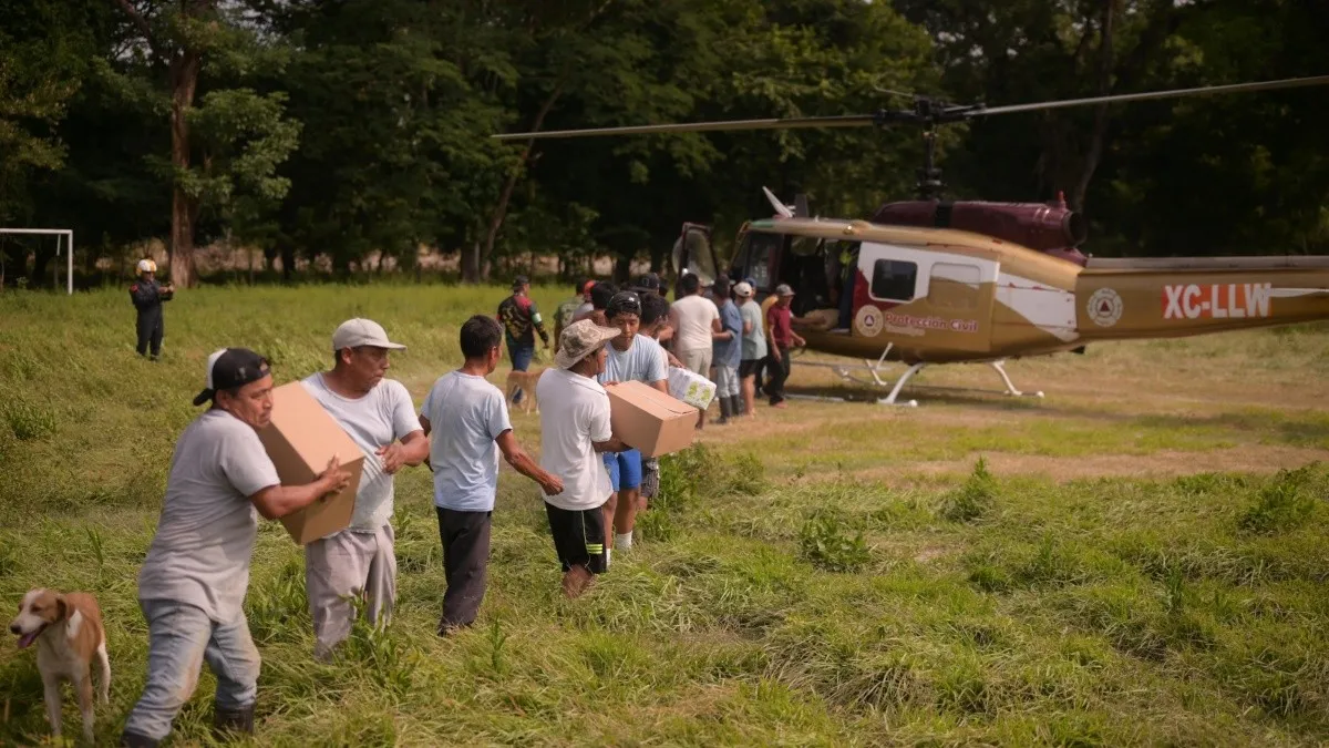 Asimismo, expresó su agradecimiento a la Secretaría de la Defensa Nacional, al Ejército Mexicano y a la Secretaría de Marina, por su participación activa en las labores de apoyo, especialmente a través del puente aéreo de 19 helicópteros que ha permitido trasladar víveres y ayuda humanitaria a las comunidades serranas.
