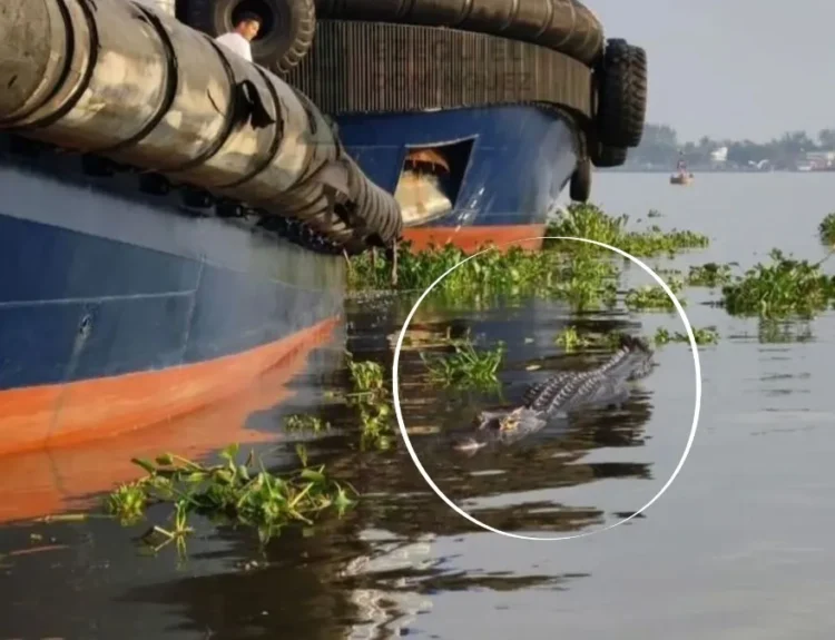 Un cocodrilo de aproximadamente dos metros de longitud fue captado en el río Coatzacoalcos, a la altura de los remolcadores que...