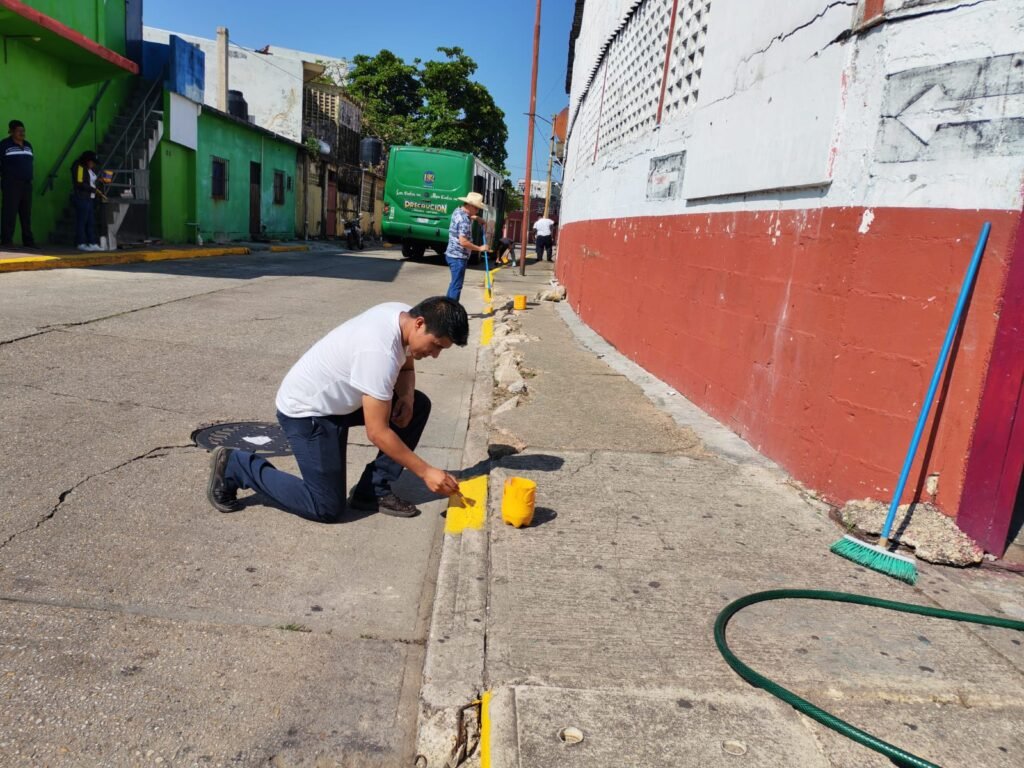La segunda etapa comenzó la semana pasada en el mercado Coatzacoalcos y contempla trabajos de mejoramiento de la imagen urbana, incluyendo pintura en guarniciones y camellones, así como mantenimiento continuo.