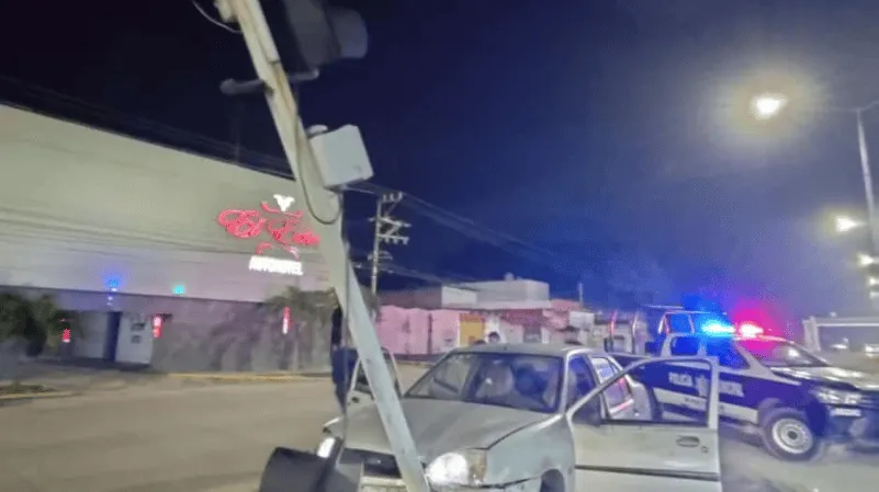 En Minatitlán un conductor en presunto estado inconveniente terminó impactado contra un semáforo en el Bulevar Instituto Tecnológico, a la altura de la calle Morelos, en la colonia Buena Vista Norte.